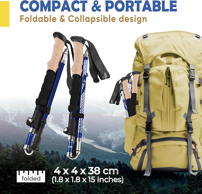 Trekology Trek-Z Collapsible Hiking & Trekking Poles: These ergonomic, collapsible poles weigh just 10 oz each and offer excellent support on uneven terrain. The cork-texture grip wicks moisture, and the quick-fold design packs easily into your hiking bag. Choose 100–120 cm (4’11″–5’10”) or 115–135 cm (5’5″–6’5″) for ideal fit and stride support.