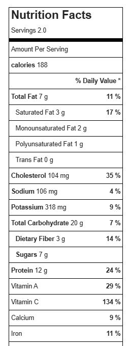 188 calories | 12g protein | 7g fat | 17g net carbs